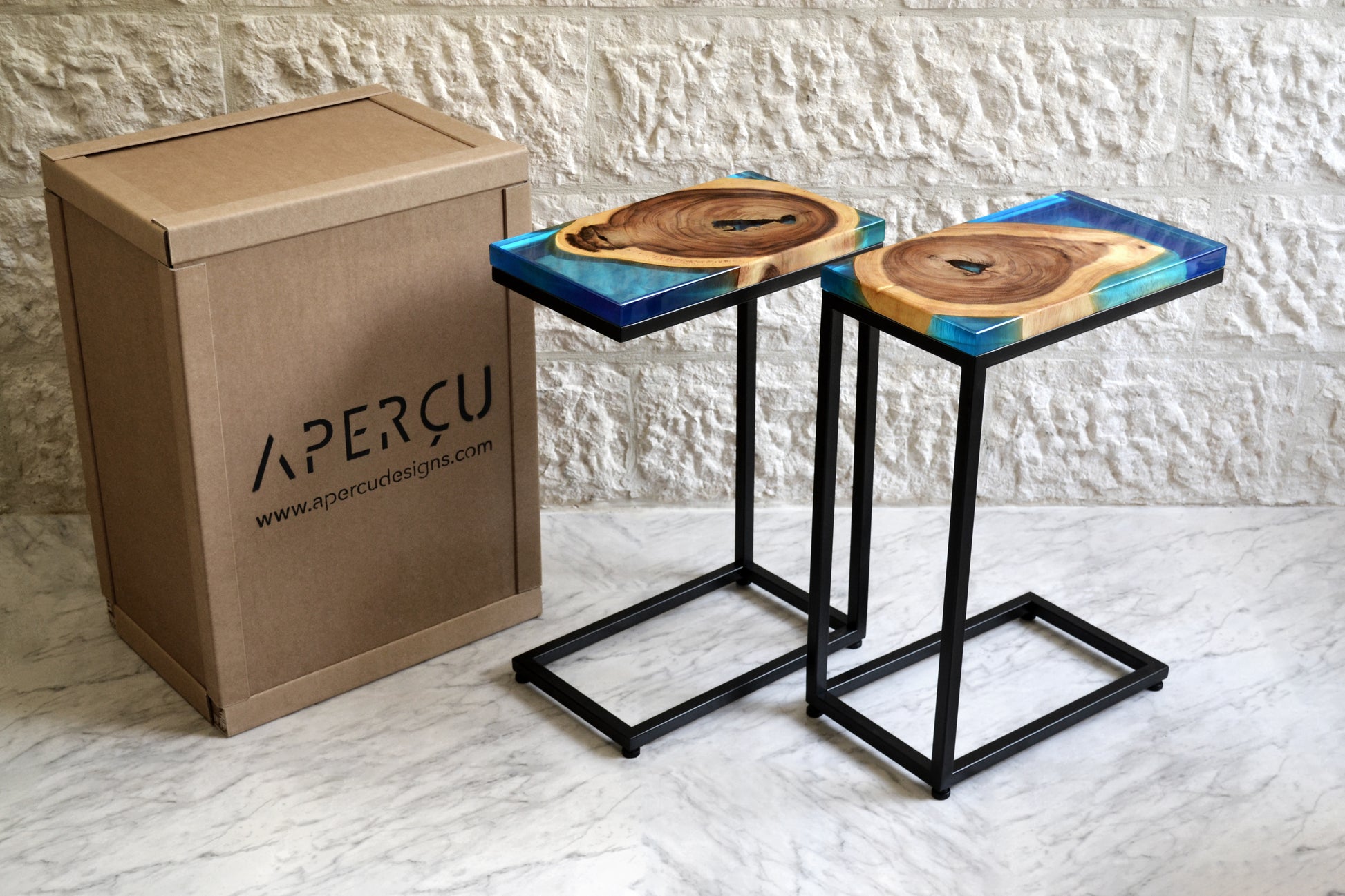 This Ç Table is the latest addition to our home furniture collection. It is entirely handcrafted by local artisans using natural wood and resin. It is practical, easy to move and serves a magnitude of functions. Pair it with any neutral tan or white sofa and it is guaranteed to stand out!
