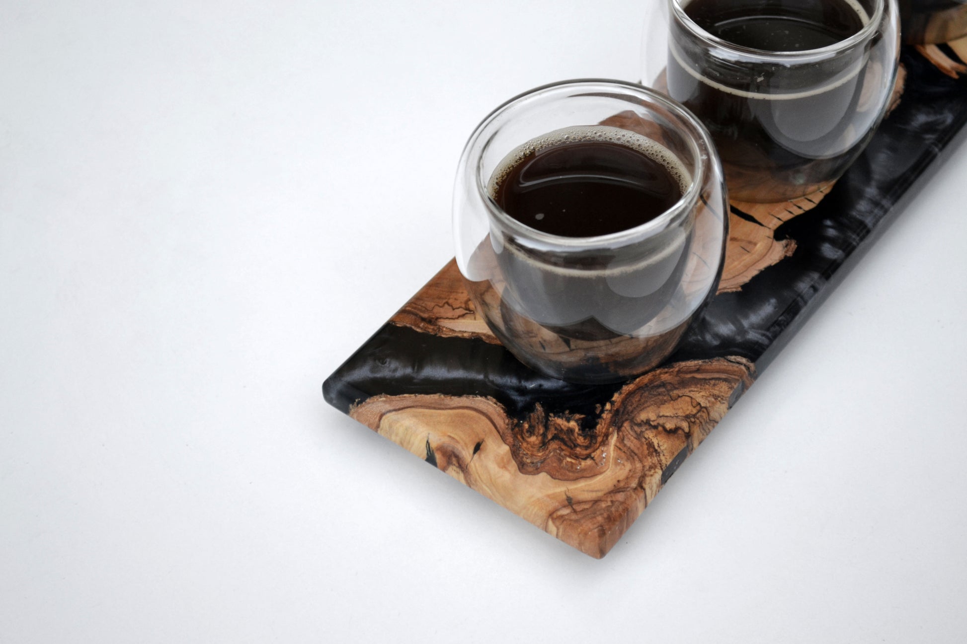 Serve in style with this seamlessly infused olive wood and resin art piece. Designed and created by local artisans to be as beautiful as it is functional to your daily life.