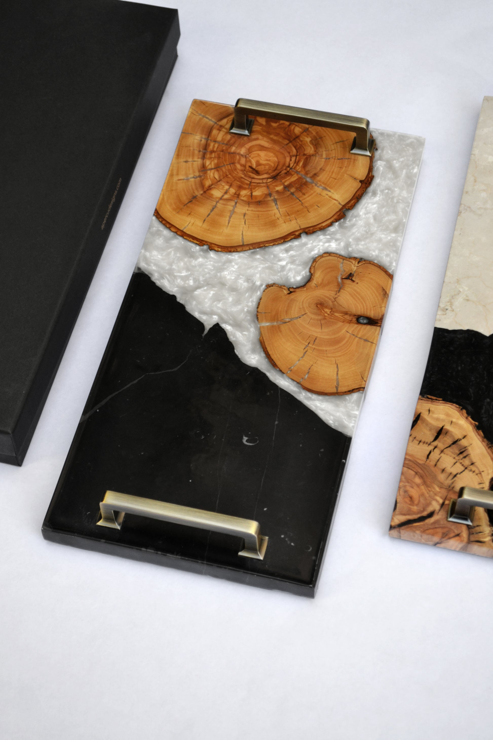 This modern and untraditional tray has been handcrafted just for you. It perfectly and seamlessly merges between natural olive wood, marble and resin. An excellent addition to any table setup ina modern and contemporary setting.