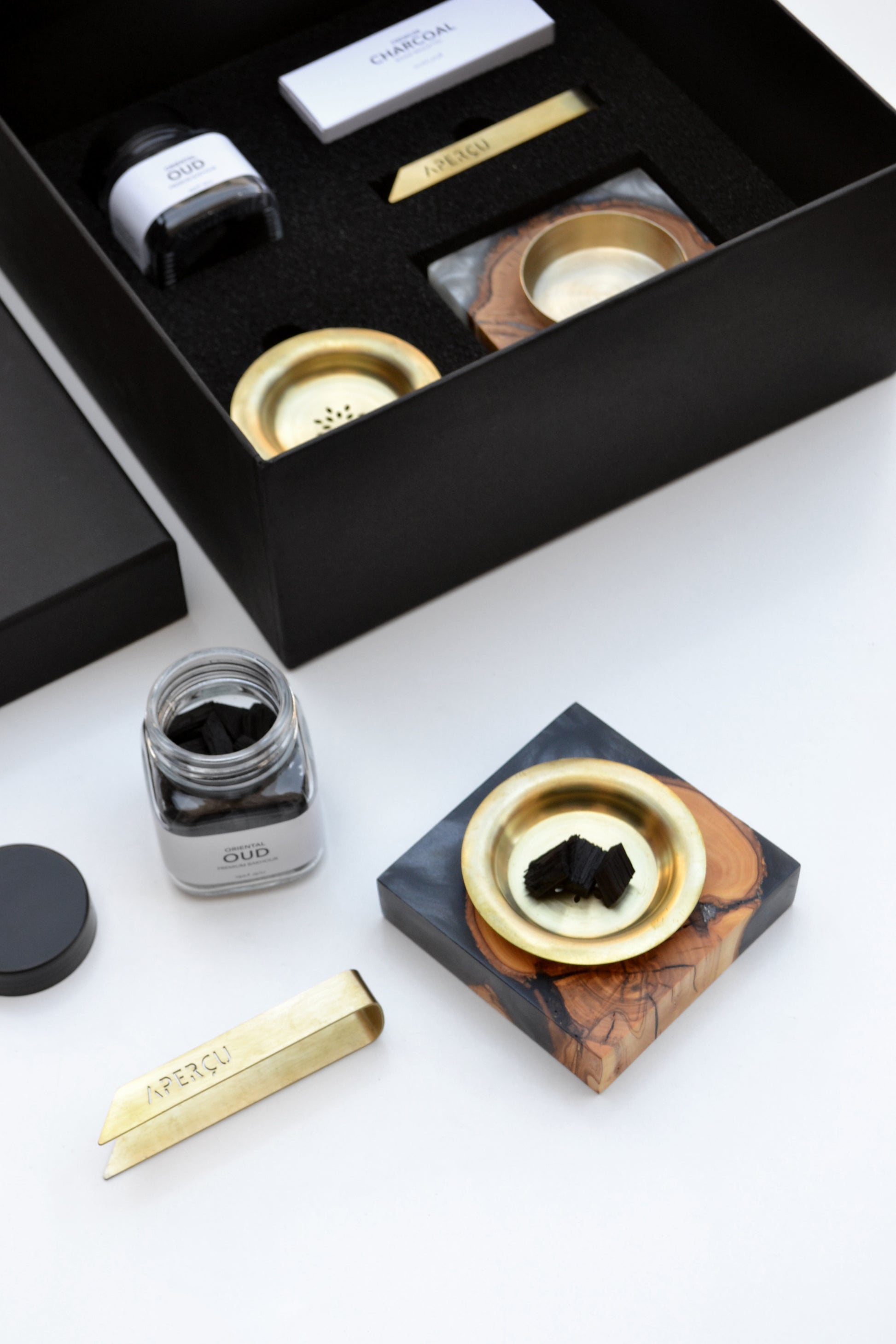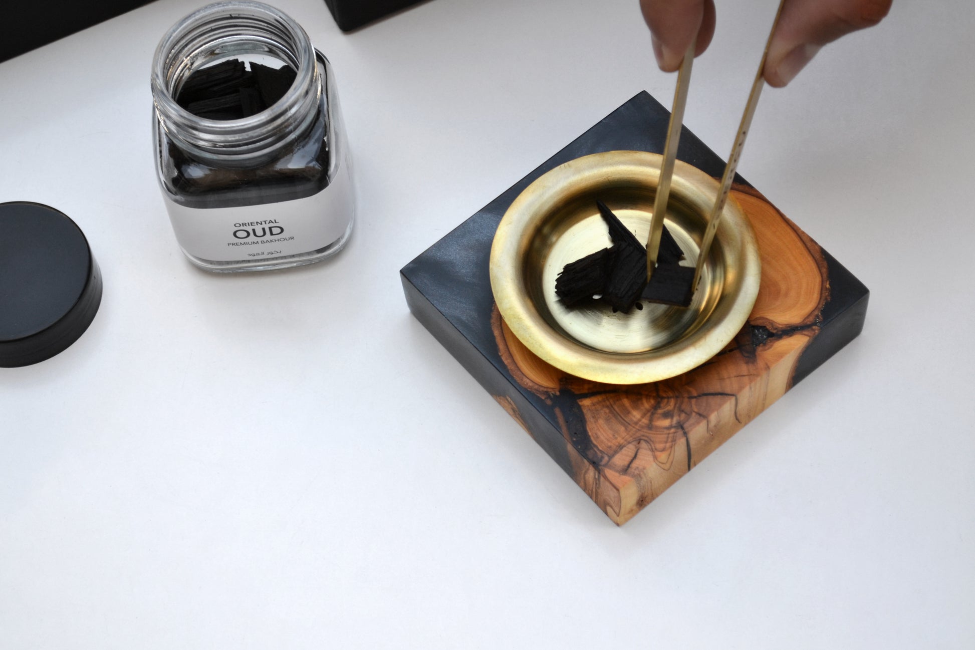 Simply place the hot charcoal on the brass tray, sprinkle some bakhour, and enjoy!